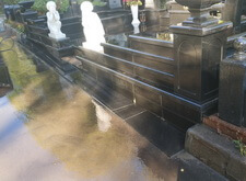 Основная наша задача на данном объекте – реставрация места захоронения и подготовка его к зиме. Помимо этого, клиент попросил немного приподнять уровень примыкающего к месту захоронения покрытия, так как на кладбище была построена дорога и в нише между участком и проезжей частью начала скапливаться влага и различная грязь.